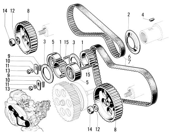 of the camshafts. This little pin keeps the drive wheel of the camshaft in